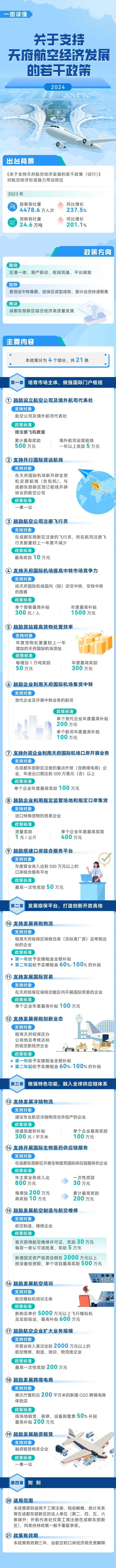 近日,《成都东部新区关于支持天府航空经济发展的若干政策(2024)》重磅出台,通过一系列奖励、补贴,支持天府航空经济发展。