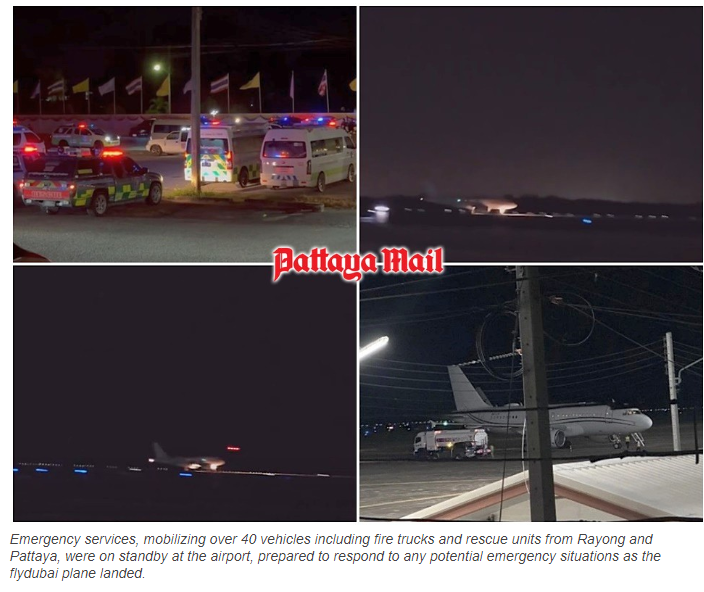 泰国乌塔堡机场塔台在接到这一请求后,迅速启动紧急响应机制。机场地勤人员立即与救援人员协调,调配了消防车,同时罗勇及芭提雅的慈善基金会也积极响应,派出超过40辆救援车,随时准备为可能发生的紧急情况提供必要的帮助。