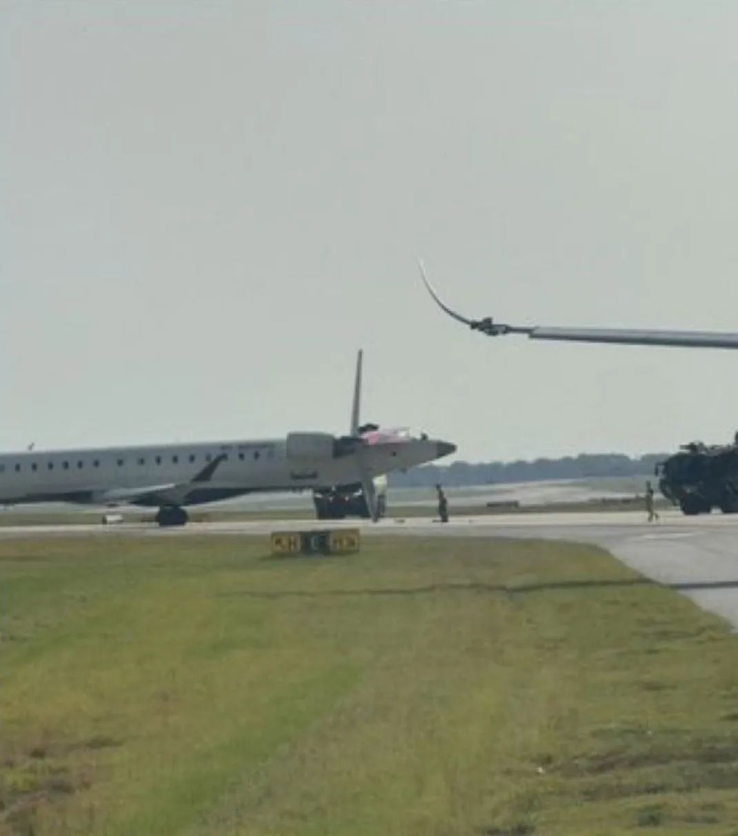 据外媒报道,当地时间9月10日亚特兰大机场两架飞机发生碰撞事故,其中一架飞机的垂尾被整体撞断。