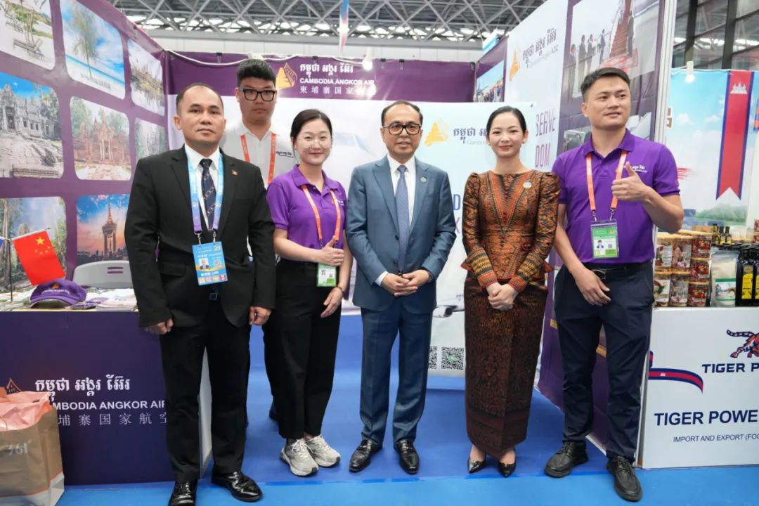 柬国航展台以展示航司航空服务与国际合作为主,并大力宣传柬埔寨名胜古迹和色彩鲜艳的民族装饰品,引起众多观众的浓厚兴趣,并与一些航空物流集成商、票务代理商和商旅客户达成合作意向。