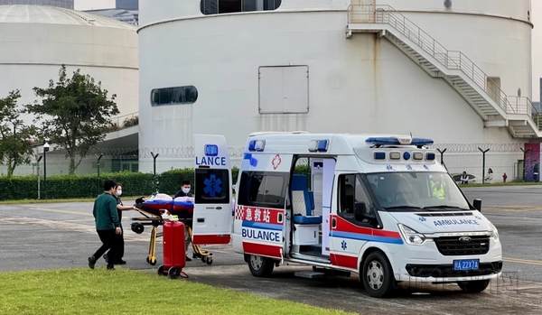 伤者送抵龙华机场后,及时接续陆上转运(华东通航服务中心供图)