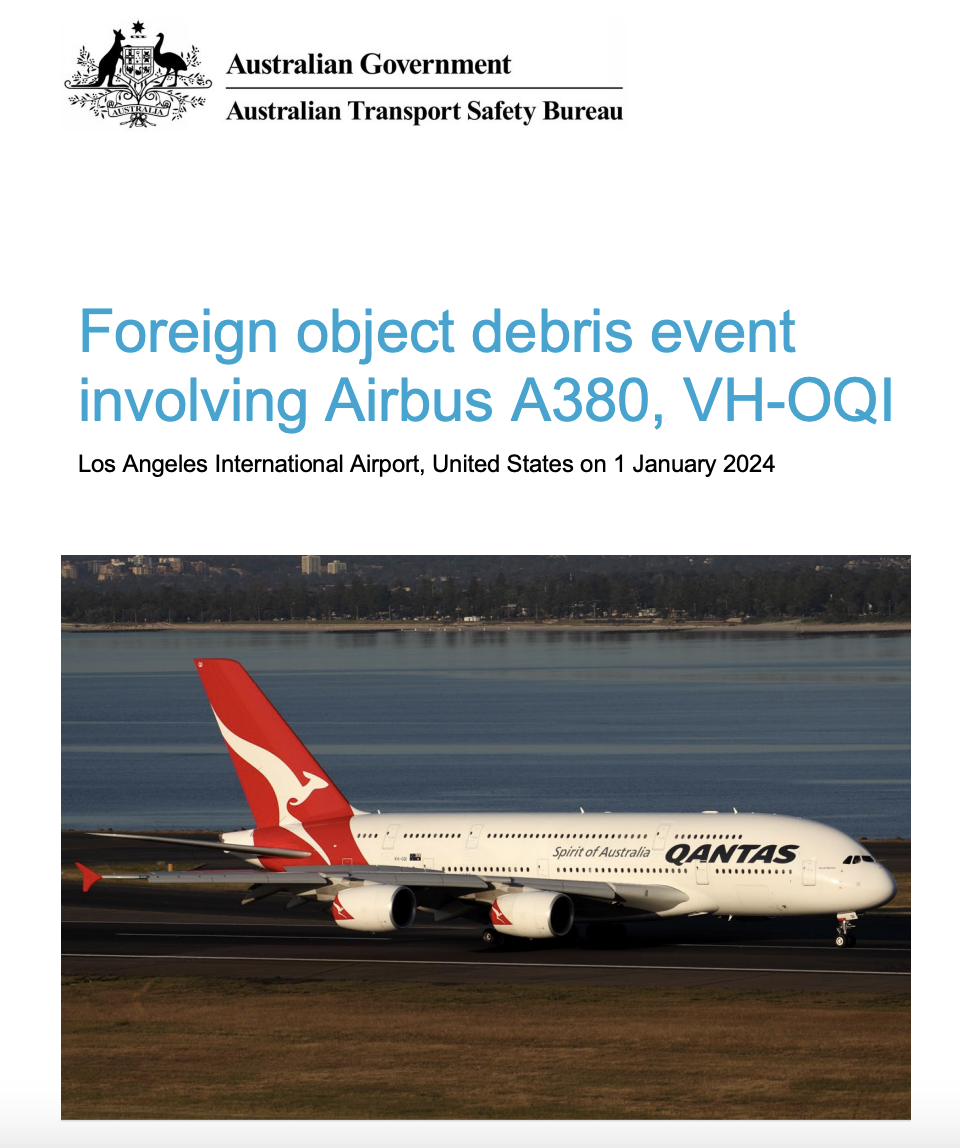 澳大利亚运输安全局(ATSB)近日披露了一份报告,澳航一架A380-842飞机(注册号为VH-OQI)此前被发现,一把长约1.25米的维修工具遗留在其发动机内,并在这一情况下累计飞行了将近300小时。