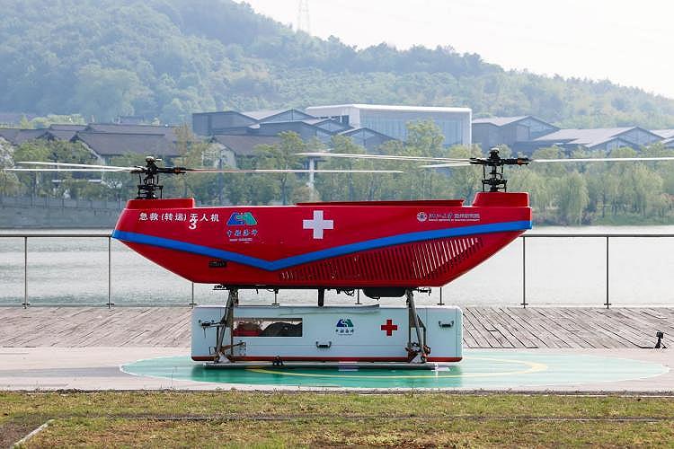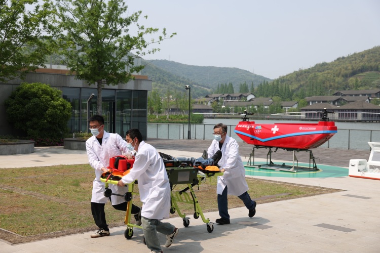 4月29日,由中船海神公司牵头,联合国家应急医学研究中心、应急总医院和浙江大学等知名院所自主研制、拥有完全知识产权的全球首款“急救(转运)无人机”,在浙江、上海两地完成了模拟“海上伤员救治转运、院前紧急救治、战场伤员后送”等“三种场景”的实战应用演练。