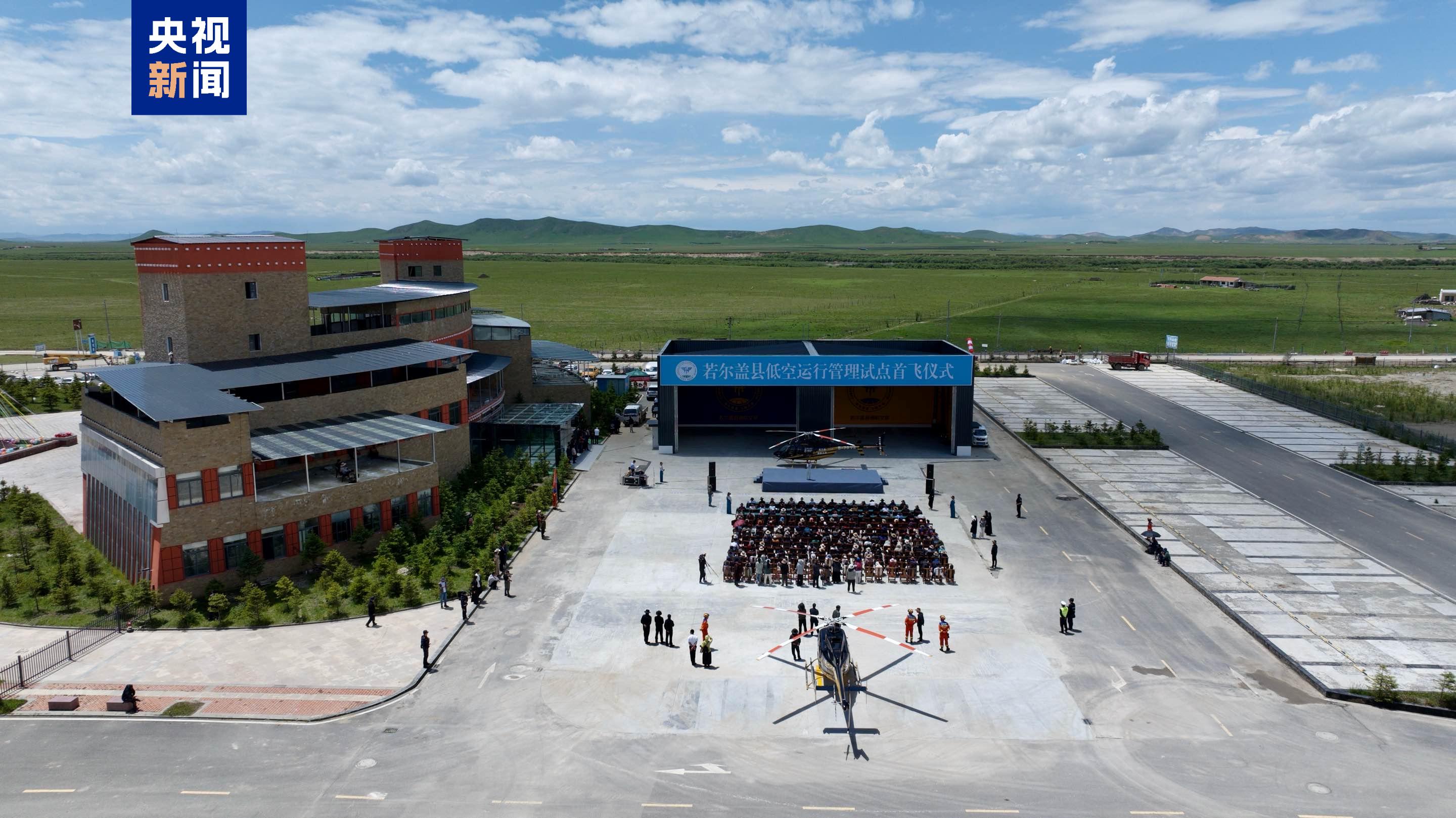 6月26日下午,位于四川阿坝州若尔盖县的低空旅游项目正式启动试运行。两架贝尔407GXi高原直升机带领游客从空中饱览若尔盖草原与黄河九曲的壮美风光,标志着全国首个高高原低空载客航线正式启航,高高原机场是指海拔高度为2438米及以上的机场。