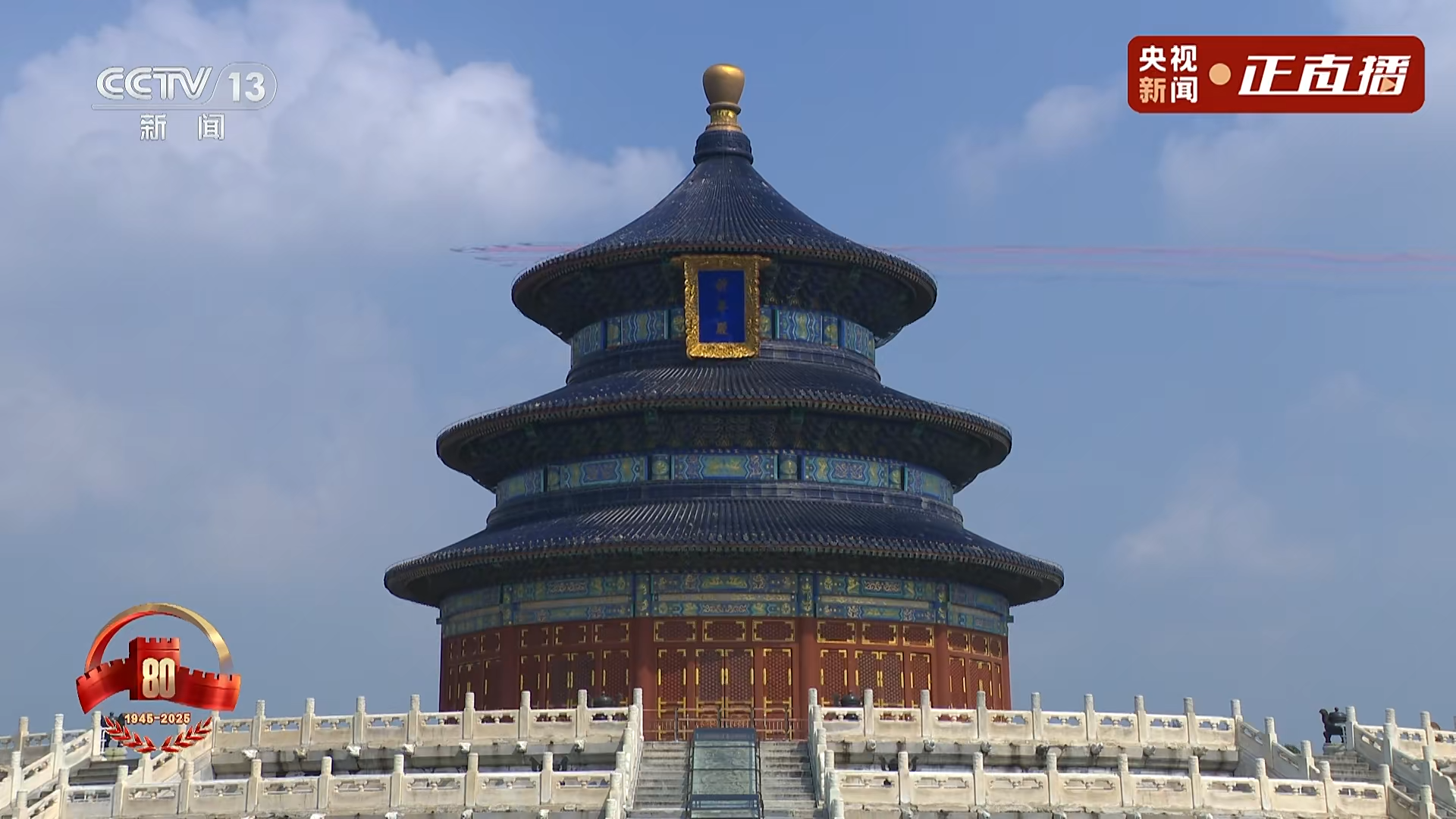 空军八一飞行表演队驾驶歼10表演机,以超密集编队出场。7架战机在空中划出14道彩烟,寓意着中华民族14年可歌可泣的抗战历程,象征着14亿多中国人民奔向强国复兴的绚丽前景。