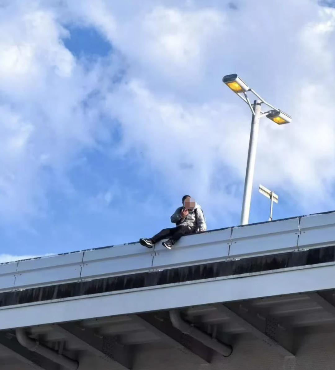 1号航站楼四楼是国际出发层。据警方描述,这名20多岁的中国男子坐在面向出租车和巴士下客区的建筑物外侧的墙上,双腿伸向外侧。