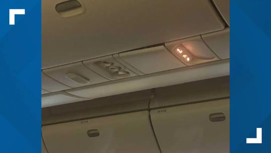 一名机上女乘客称,飞机降落后,机舱内的卫生间门撞坏了,客舱壁板也裂开了。