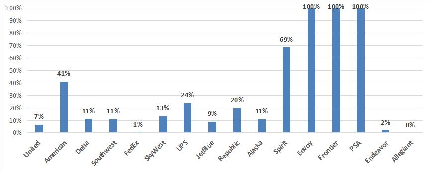 图11 2024年末美国在营百架机队航空公司经租飞机占比