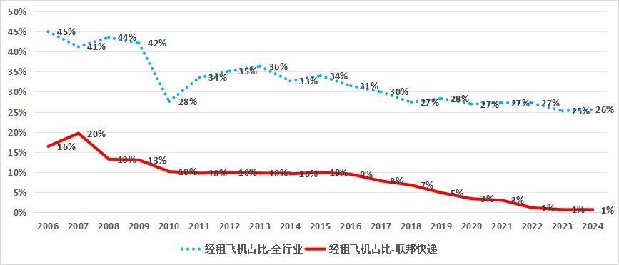 图12 2006-2024年美国全行业、联邦快递经租飞机占比
