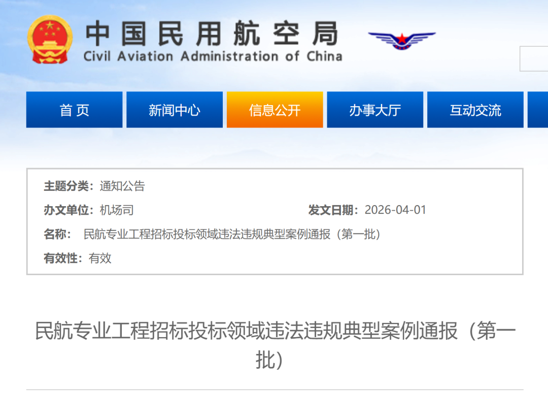 为进一步规范民航专业工程招标投标领域市场秩序,充分发挥典型案例的警示教育作用,对违法违规行为形成有效震慑,现选取一批民航专业工程招标投标领域违法违规典型案例予以通报。