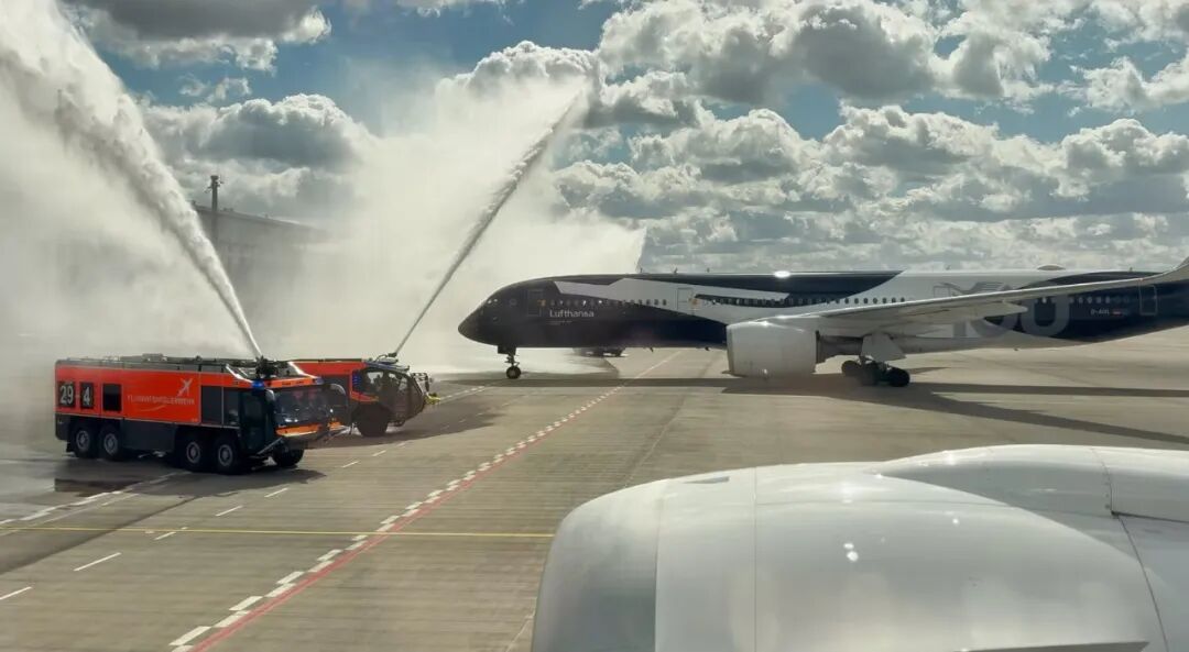 作为柏林勃兰登堡机场纪念活动的一部分,两架经过特别装饰的汉莎航空客机抵达现场,接受了机场消防队联合进行的水门礼,随后起飞执行复刻历史航线的纪念飞行。
